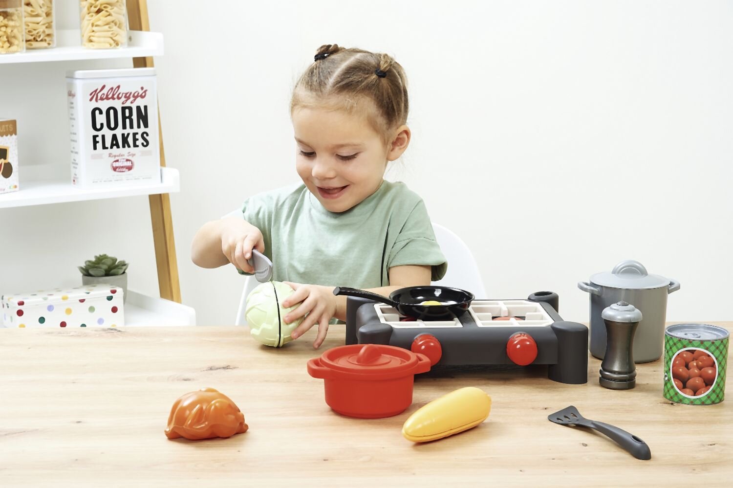 Dvojplatničkový varič so sadou hrncov s pokrievkami, rajnicami, panvičkou, potravinami a ďalším príslušenstvom.