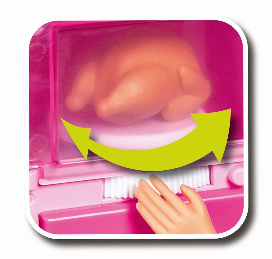 Bábika Steffi s kuchyňou s bohatým príslušenstvom, chladničkou, mikrovlnkou a rúrou.