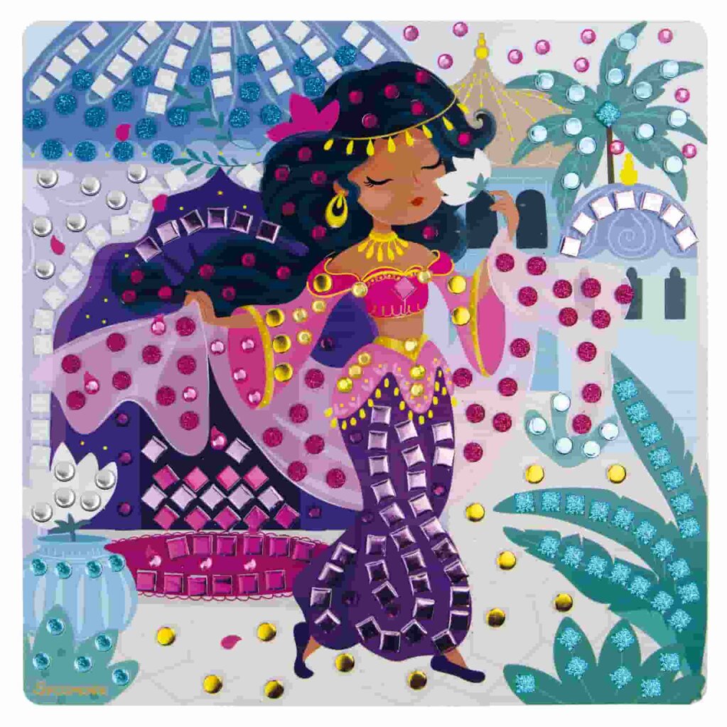 Deti si dotvoria tri nádherné obrázky zo sveta rozprávok pomocou samolepiacich kamienkov a trblietavých mozaikových dielikov. Každý detail dodá ich výtvoru jedinečný lesk a po dokončení si deti môžu svoje diela hrdo vystaviť - stačí ich zavesiť na priložené priehľadné závesy.