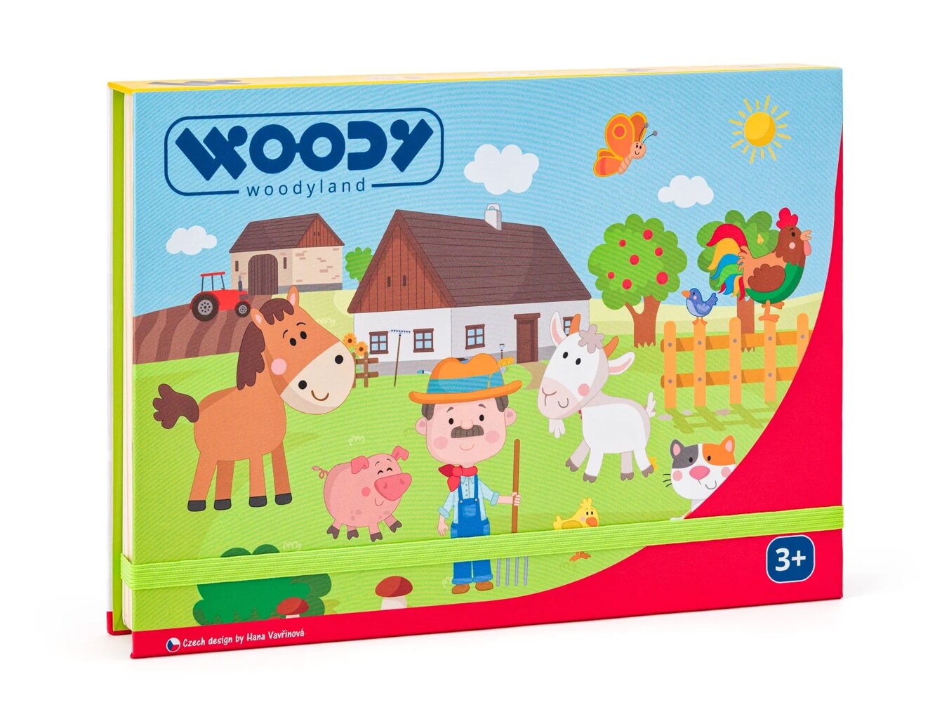 Drevená krabička je plná zvieratiek, ľudí, domčekov a ďalších prvkov s motívom farmárčenia. Každý motív sa navyše musí poskladať z viacerých častí. Dieťa ich umiestňuje na magnetické veko s obrázkom statku a lúky.