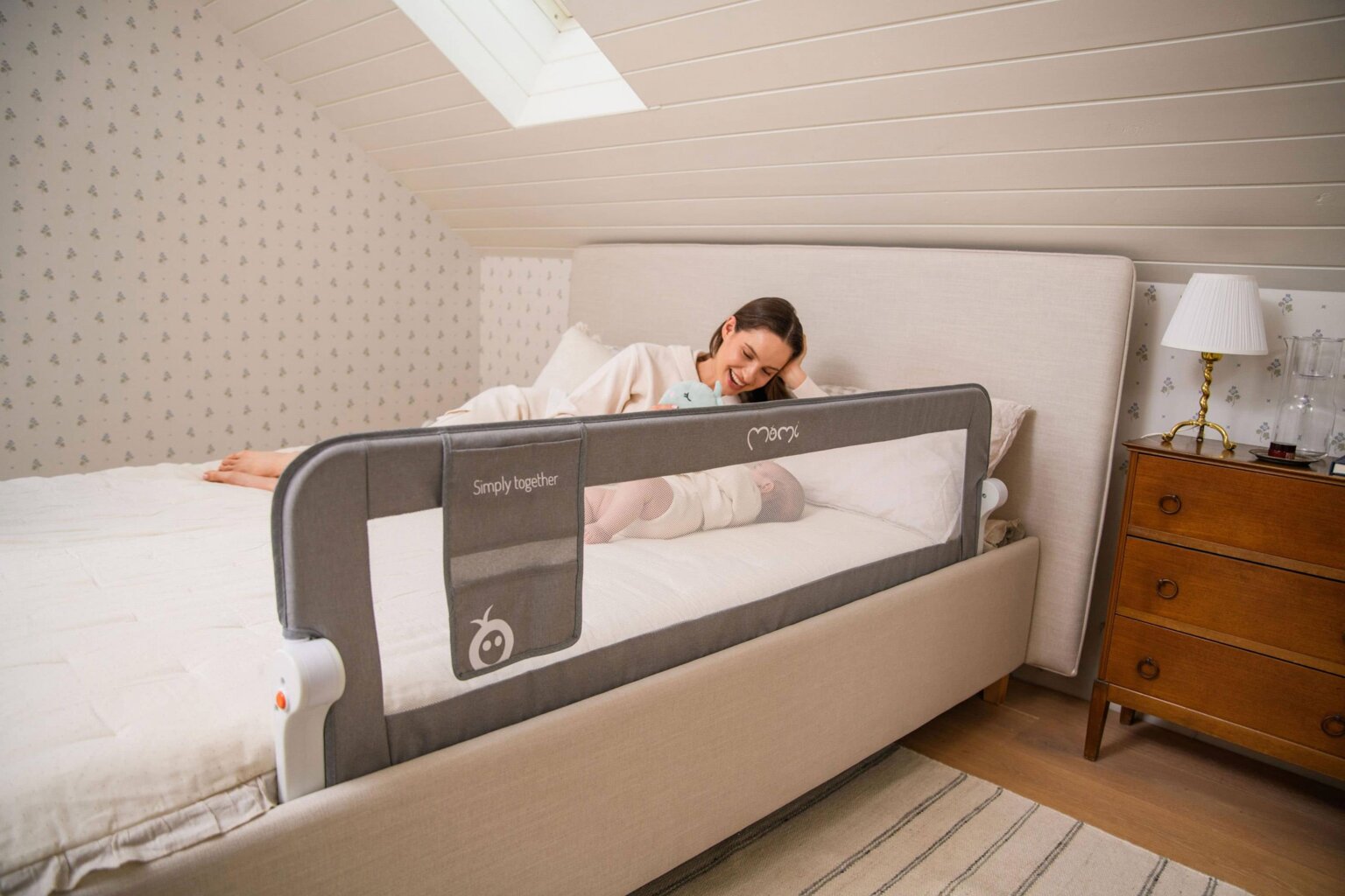 A bojíte sa, že by mohlo spadnúť? Vieme, ako sa cítite! Preto sme vytvorili MoMi LEXI, najlepšieho strážcu detského spánku! Výrobok pre bábätko, ktoré si zdriemne v posteli rodičov, aj pre staršie dieťa, ktoré sa práve presťahovalo do svojej "dospeláckej" postele. Montáž je rýchla a nevyžaduje žiadne náradie. Vzdušná sieťovina zaisťuje dobrú cirkuláciu vzduchu a vďaka funkcii otvárania zábrana nebráni voľnému používaniu postele.